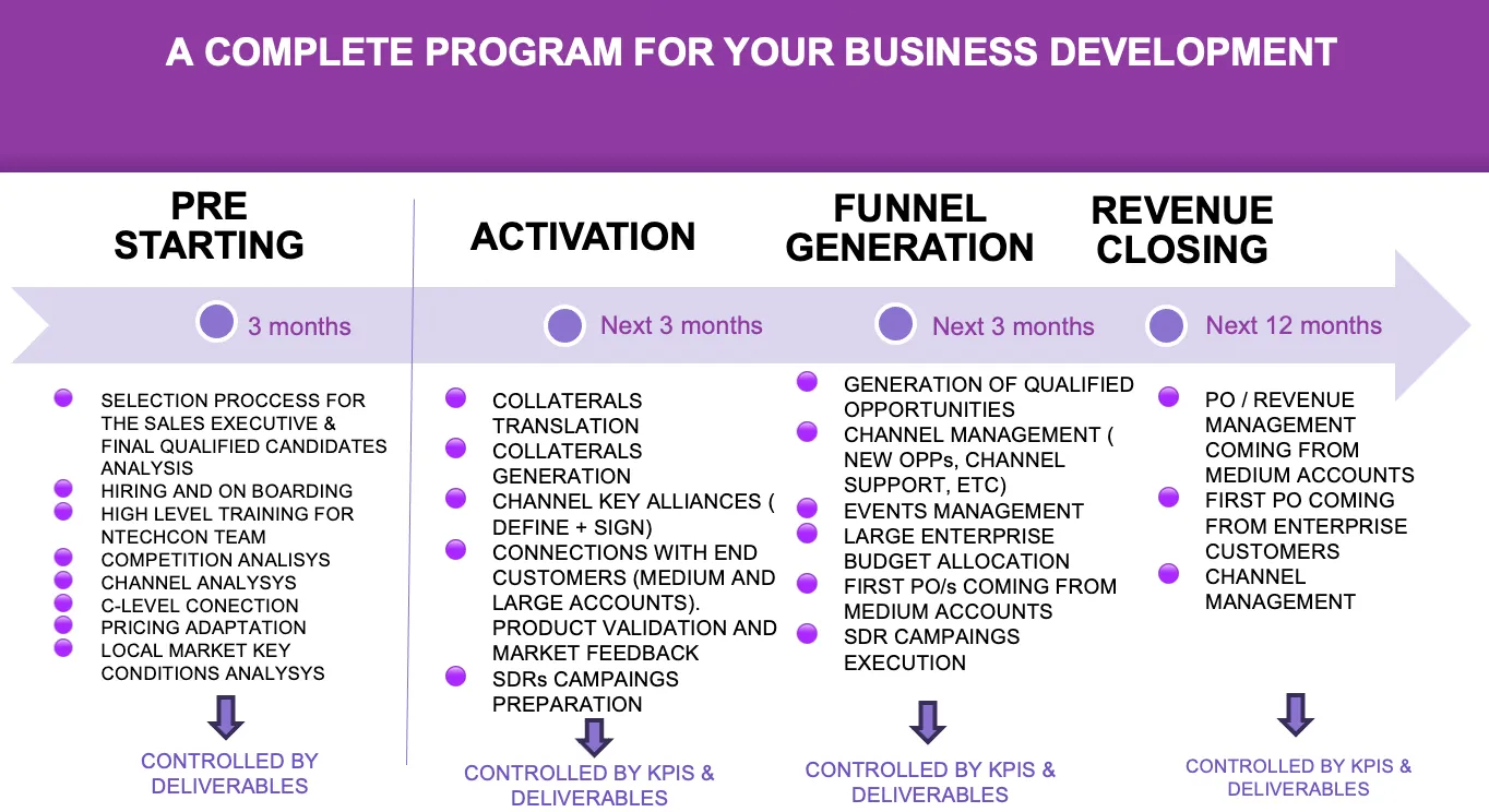 - >50% de reducción del tiempo del ciclo de ventas : utilizando toda la estructura NTECHCON y la red C-Level, el vendor puede reducir significativamente el tiempo necesario para generar negocios con clientes empresariales medianos y grandes.